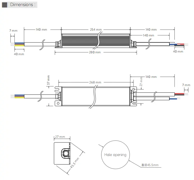 Тази серия драйвери е класифицирана като IP42 за употреба на закрито и е поставена в компактен метален корпус за ефективно разсейване на топлината. За подробни спецификации, схеми на свързване и за заявка на конкурентна оферта на едро, моля, свържете се с нашия екип по продажбите. Нека ви предоставим надеждно, дългосрочно решение за захранване на осветлението.