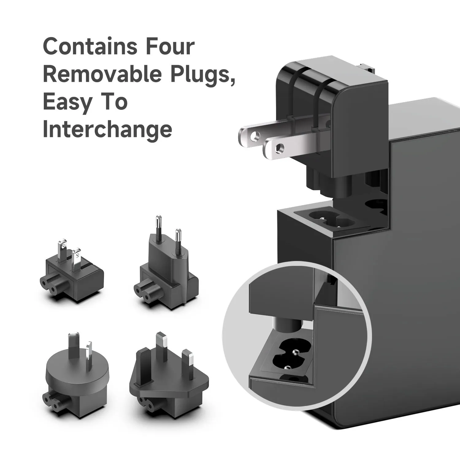 Мултистандартни щепсели: Захранващият адаптер STARWELL е снабден с 4 типа щракващи щепсели (САЩ, ЕС, Обединеното кралство и Австралия), няма нужда от допълнителни конвертори за трансгранично пътуване.