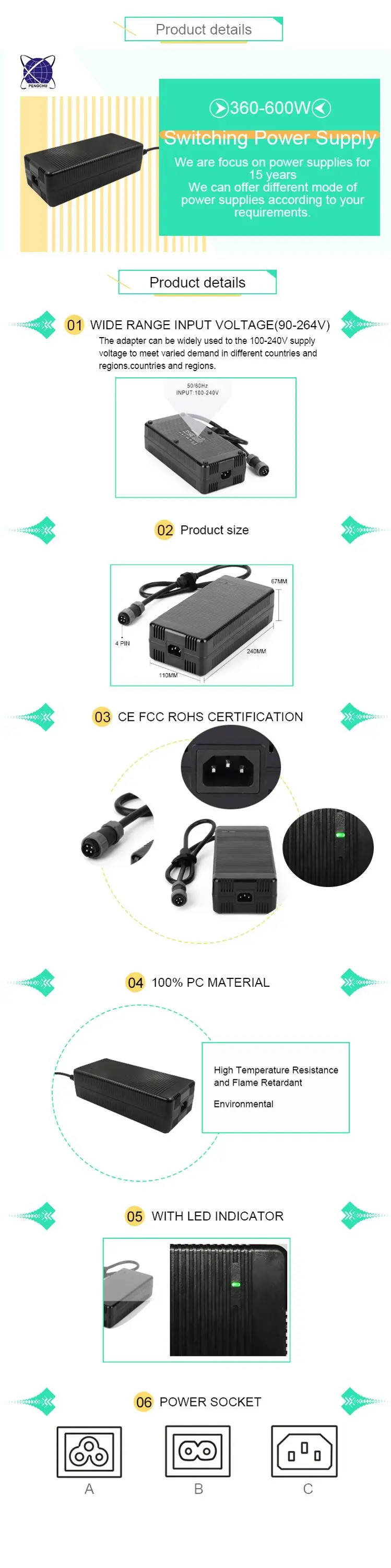 Основното предимство на този продукт се крие в неговата мощна изходна способност: 12V 50A 600W превключващ захранващ адаптер може да осигури непрекъсната и чиста мощност до 600 вата, гарантирайки, че вашата система работи стабилно дори при пълно натоварване. Без значение къде се намирате, неговият универсален дизайн на превключващо захранване с напрежение 600 W може автоматично да се адаптира към широкия диапазон на напрежение от 90 V-264 V по целия свят, като напълно елиминира проблемите, причинени от нестабилно напрежение. За да улесним свързването на потребителя, ние специално разработихме 600W захранващ адаптер с 4-пинов din конектор, който има стабилен интерфейс и отличен контакт, което значително повишава удобството и безопасността на инсталиране.