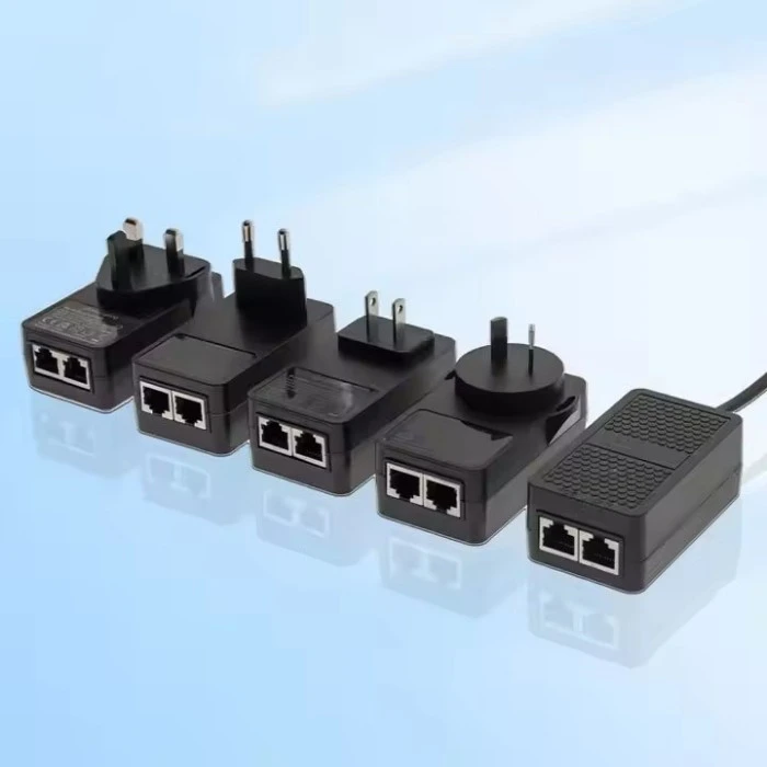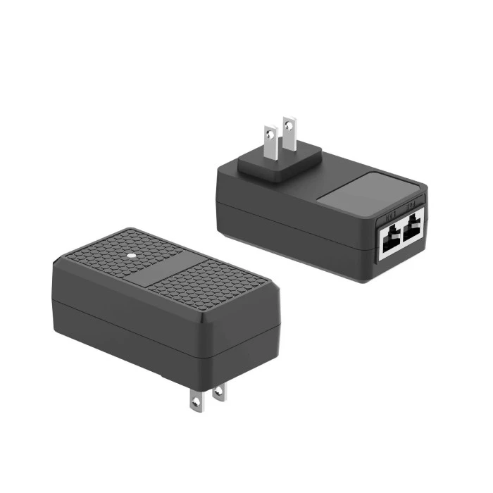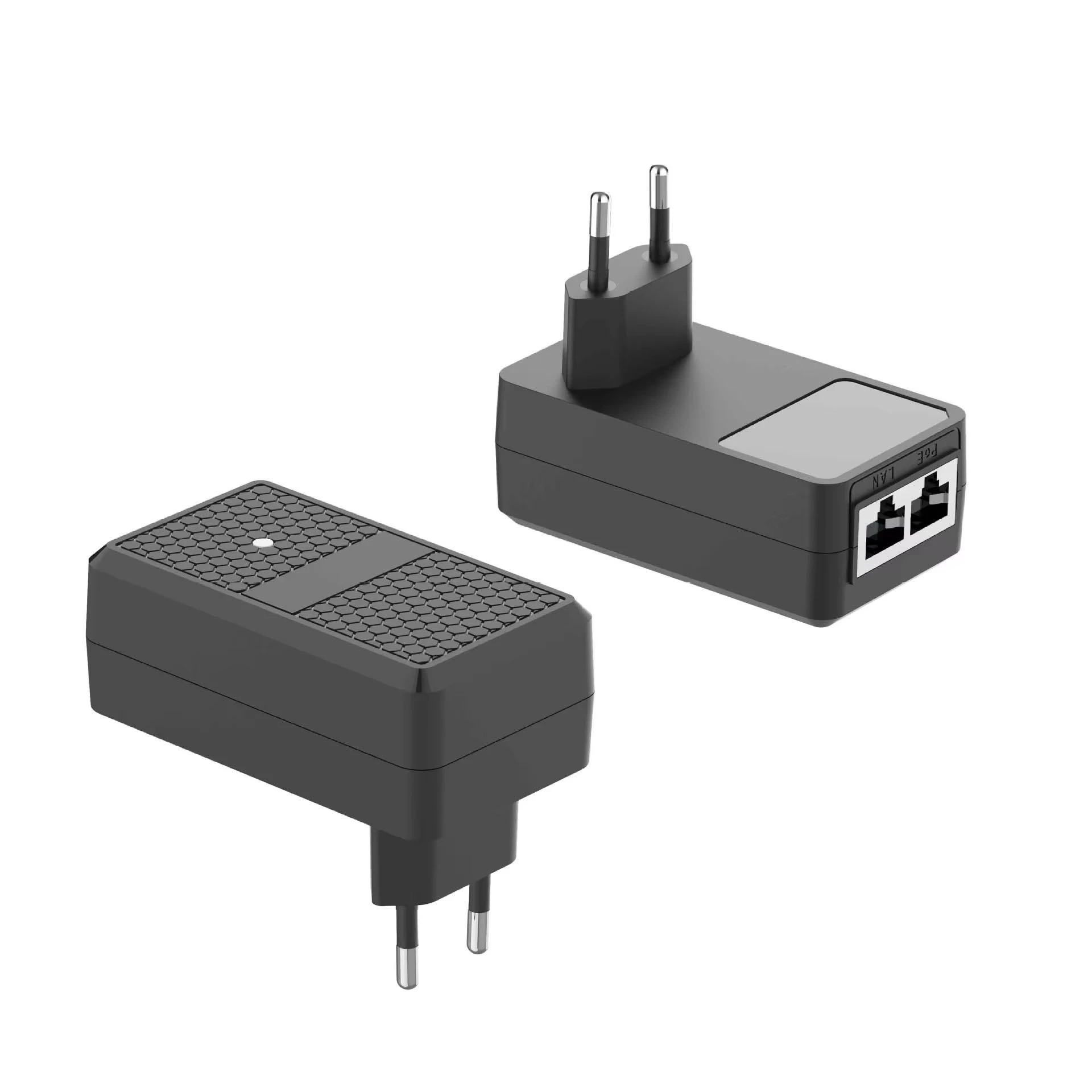 12W PoE инжектор със сменяем щепсел за монтиране на стена е интегрирано мрежово захранващо устройство, което съчетава захранващ адаптер и пасивен PoE инжектор в едно компактно устройство. За разлика от традиционните PoE настройки, които изискват както захранващ адаптер, така и инжекторен модул, този дизайн опростява инсталирането, като позволява устройството да бъде директно монтирано към стенен контакт.