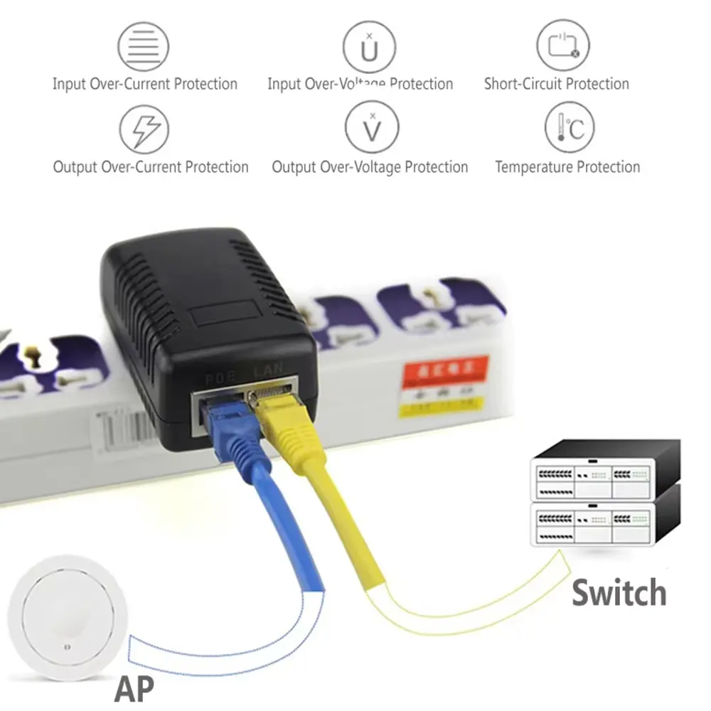 Перфектен за захранване на безжични точки за достъп (AP) в офиси, хотели и домове, където монтираната на стена инсталация спестява място.