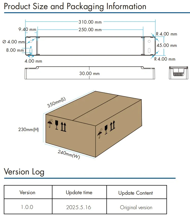 Интерфейс за затъмняване 0/1-10V димиране: Диапазон на димиране 0-10V или 1-10V, консумация на ток на конектора за димиране ≤ 0,3 mA, кривата на димиране вижте "Char.curve Фигура 6-7", CCT кривата се отнася до "Char. крива Фигура 8". Димиране чрез бутон: Диапазон на напрежението 220~240VAC 50/60Hz.