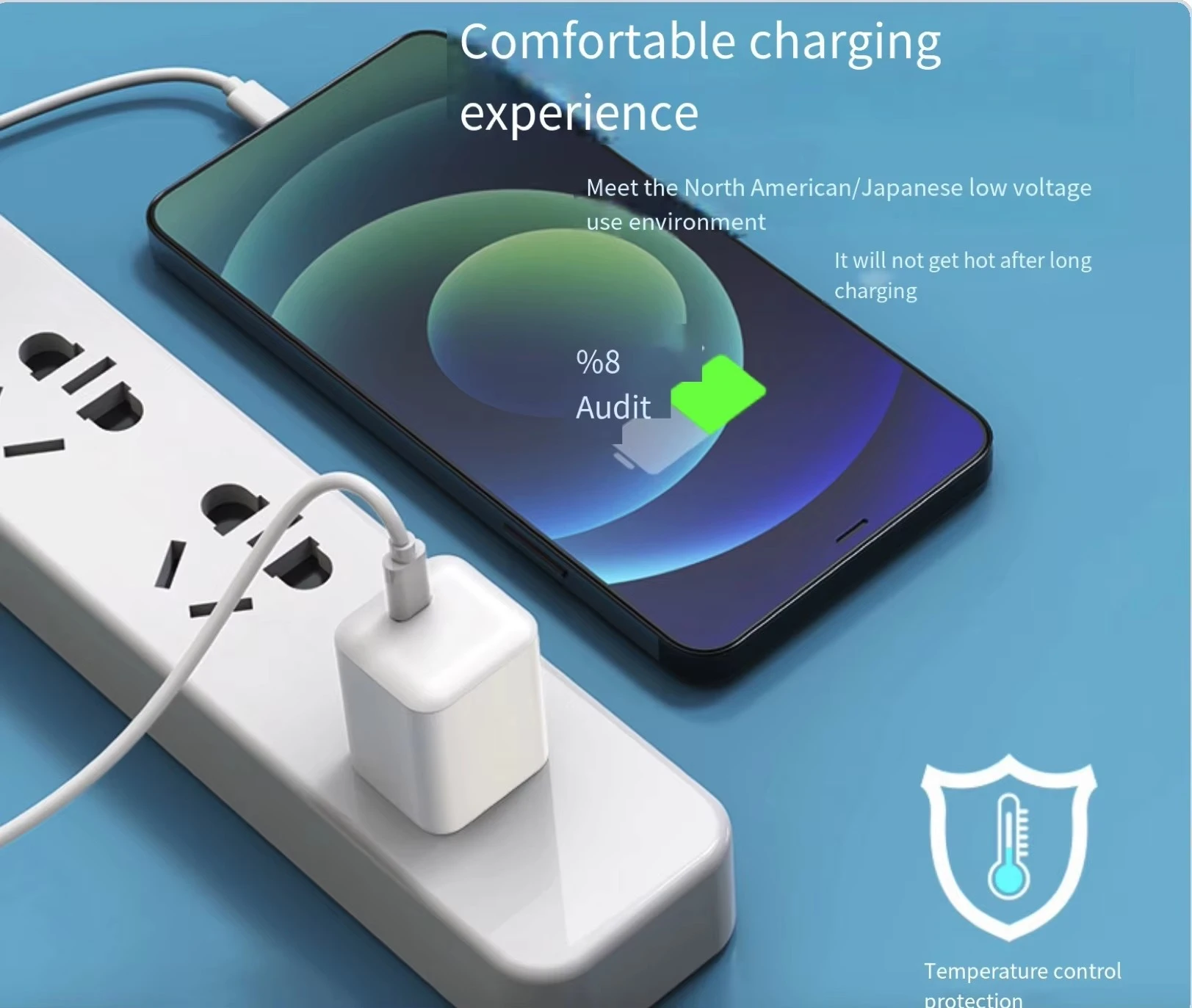 STARWELL висококачествено 20W Japan Plug Quick Charger устройство, наричано още 20W PD бързо зарядно устройство с USB-C и Type-C портове, поддържа бързо зареждане за iPhone и устройства с Android, достигайки 0-50% за 30 минути. Той разполага с множество защити, включително свръхток, свръхнапрежение и късо съединение, осигуряващи безопасна и надеждна работа. Изработен от PC огнеупорен материал, той отговаря на CE и ETL сертификати, предлагайки съответствие със стандартите за безопасност на ЕС и подобрявайки достъпа до пазара.