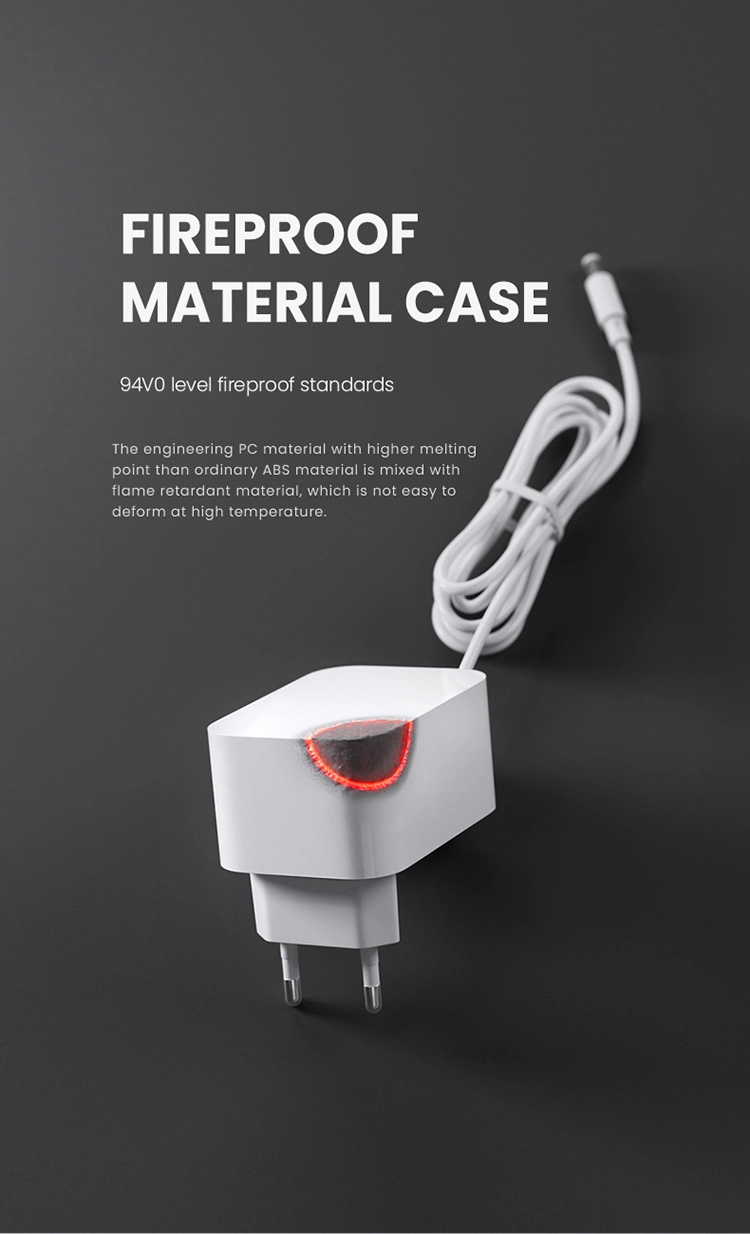 Ядрото на неговата производителност се крие в стабилния изход на захранване 12V 2A 24V1A. Тази прецизна електрическа спецификация гарантира, че вашето оборудване получава постоянно и чисто захранване, предпазва го от потенциални повреди, причинени от колебания на напрежението, и удължава експлоатационния му живот. Вашата безопасност е наша основна грижа. Ето защо нашите адаптери се гордеят, че са получили сертификати GS/CE/ERP/ROHS. Тези строги международни сертификати са вашата гаранция, че вашите продукти са преминали строги тестове за електрическа безопасност, електромагнитна съвместимост и въздействие върху околната среда, което ги прави подходящи за употреба на различни пазари по света. В допълнение, структурата на адаптера е направена от висококачествен компютърен огнеустойчив материал, осигуряващ критичен защитен слой срещу прегряване и потенциални опасности от пожар.