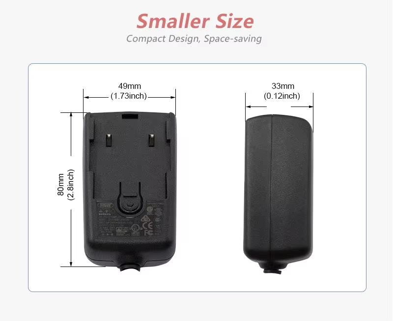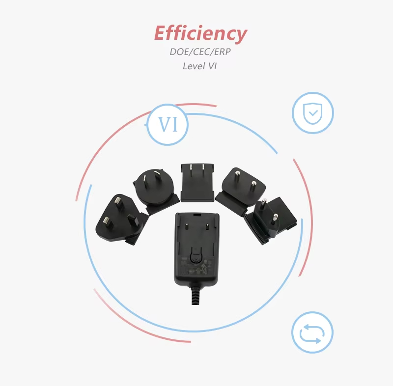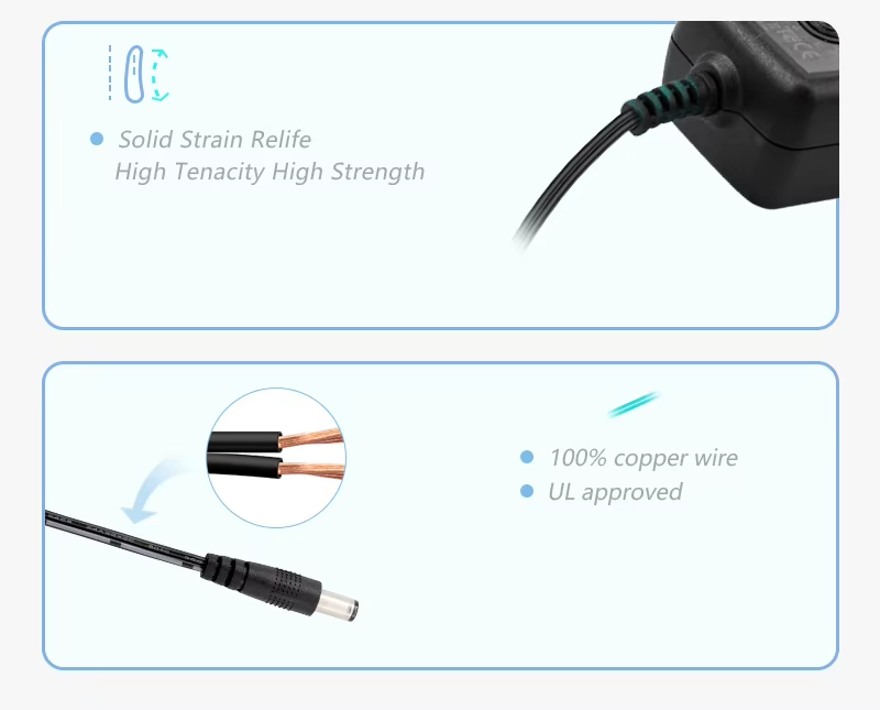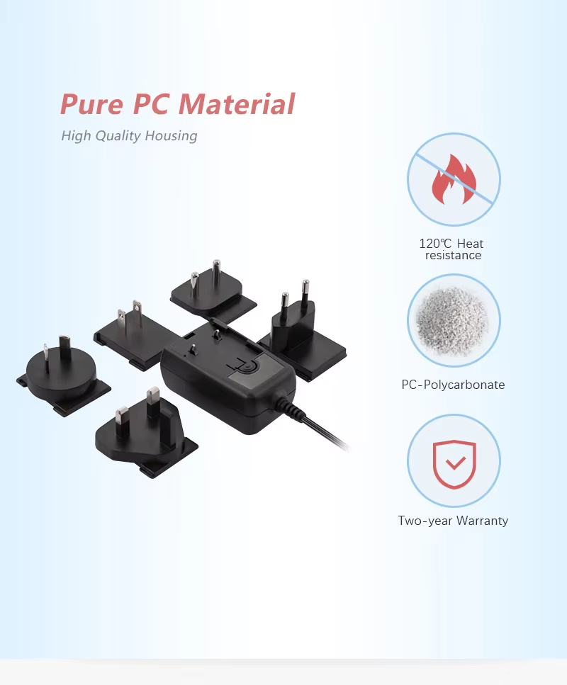 Ефективно и стабилно захранване: Като високоефективен захранващ адаптер от 24 W, той използва усъвършенствана технология за захранване със сменяем щепсел, за да постигне ефективно преобразуване. Той може стабилно да преобразува променлив ток в постоянен ток (AC към DC адаптер със сменяем щепсел), осигурявайки непрекъсната и чиста енергия за вашите устройства.