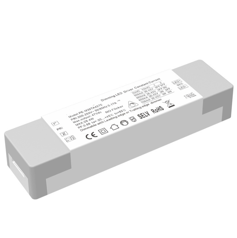 Висококачественият 30W постоянен ток триак димиращ светодиоден драйвер е произведен от Starwell, професионален производител на светодиодни драйвери в Китай. Този издръжлив светодиоден драйвер е специализирано захранващо устройство, пригодено за LED осветителни системи, интегриращо стабилен постоянен изходен ток и съвместимост с димиране на TRIAC за балансиране на производителността на осветлението и енергийната ефективност. С номинална мощност от 30 W, той съответства на LED тела със средна мощност (като надолу осветителни тела, панелни осветителни тела и осветителни тела за релси) и осигурява постоянно подаване на ток – ефективно предотвратява трептенето на LED, причинено от колебания на напрежението, и удължава живота на осветлението с 30% или повече в сравнение с непостоянни токови драйвери.