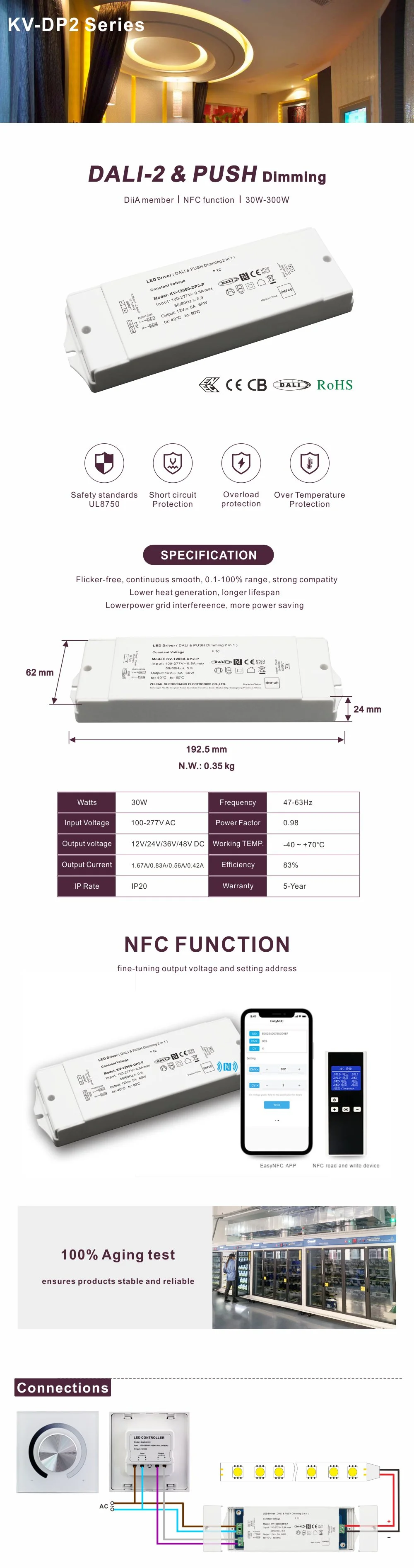 В допълнение към своята мощна DALI функционалност, този драйвер предлага изключително изживяване при затъмняване. Той постига копринено гладък ефект NFC Dimming Smooth No Flicker, като напълно елиминира видимото трептене и трептене дори при ниски нива на яркост, като ефективно защитава зрението и създава комфортна и здравословна осветителна среда. Неговият широк обхват на входното променливотоково напрежение (100-265V вход) му позволява да се адаптира към колебанията на напрежението в електрическите мрежи по целия свят, осигурявайки стабилна работа в различни региони.