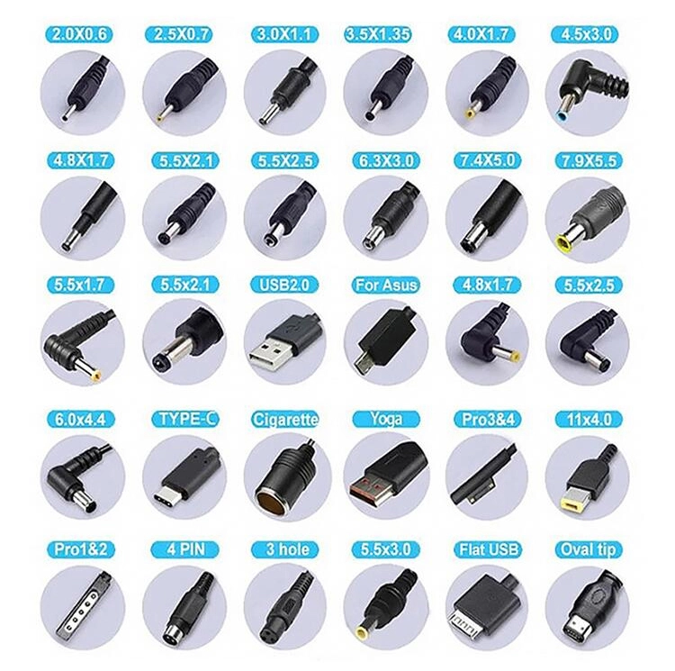 Налични USB-C, 5,5x2,1 mm, 5,5x2,5 mm, 4,0x1,7 mm, 3,5x1,35 mm и други |