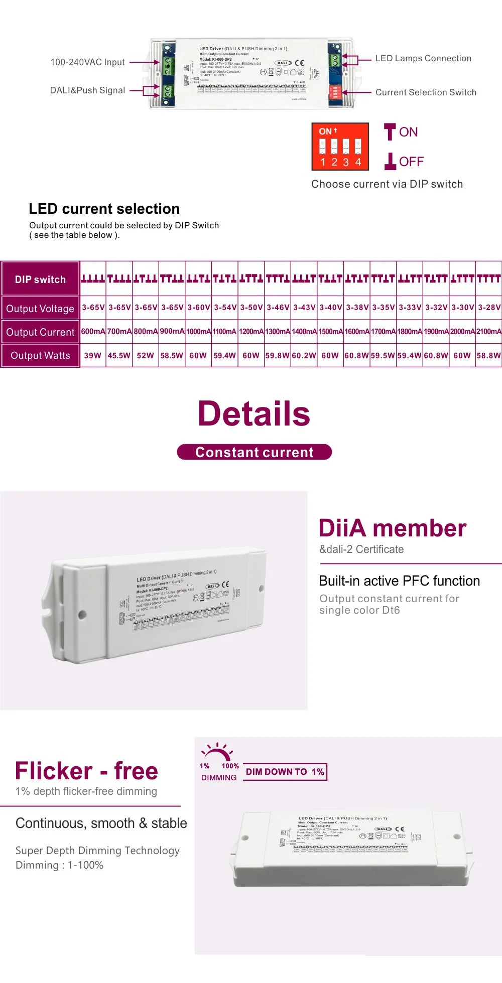60W постоянен ток dali димиращ CCT led драйвер |