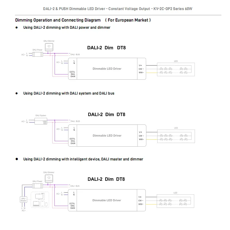 Поместен в компактен, огнеупорен корпус, той е подходящ за вътрешно търговско осветление като офиси, хотели и търговски центрове. С надеждна производителност и лесна интеграция на DALI шина, той позволява интелигентен контрол на осветлението и управление на сцени, идеални за висококачествени регулируеми проекти за бяло осветление.
