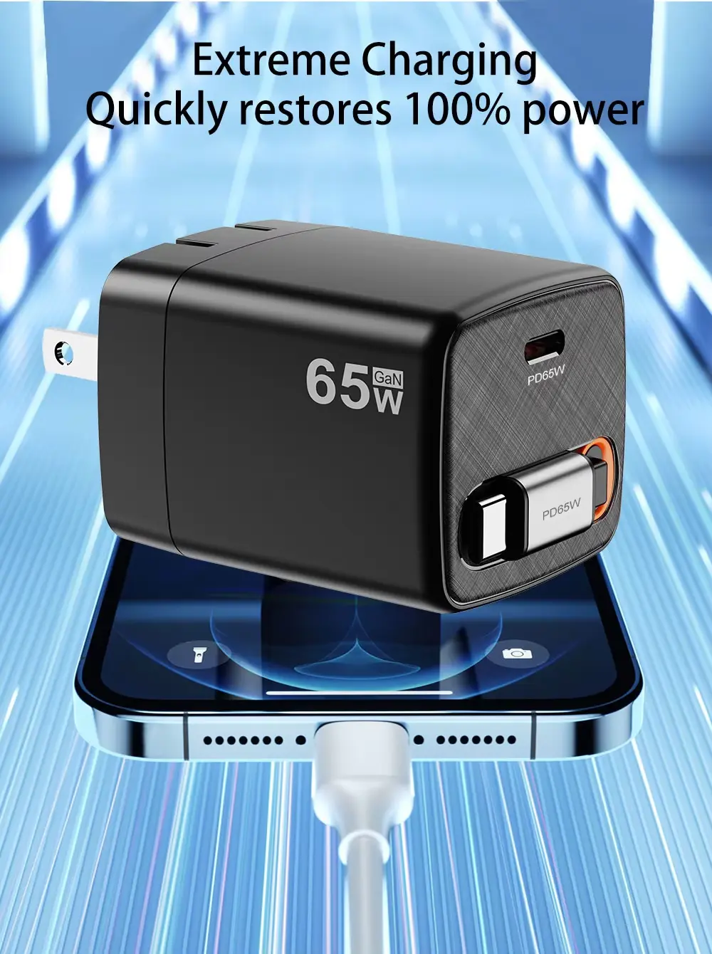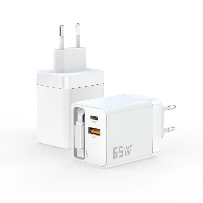Високоскоростно 65W зареждане: Захранва лаптопи и бързо зарежда телефони.