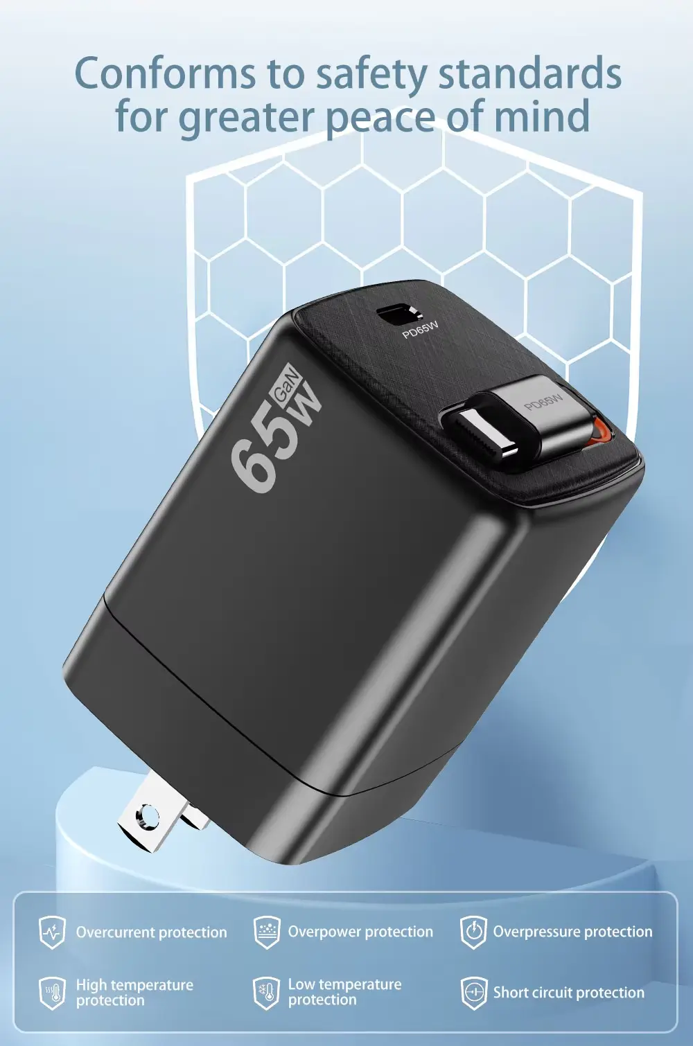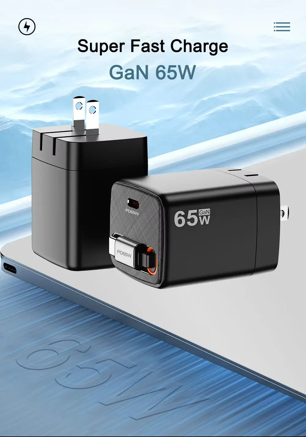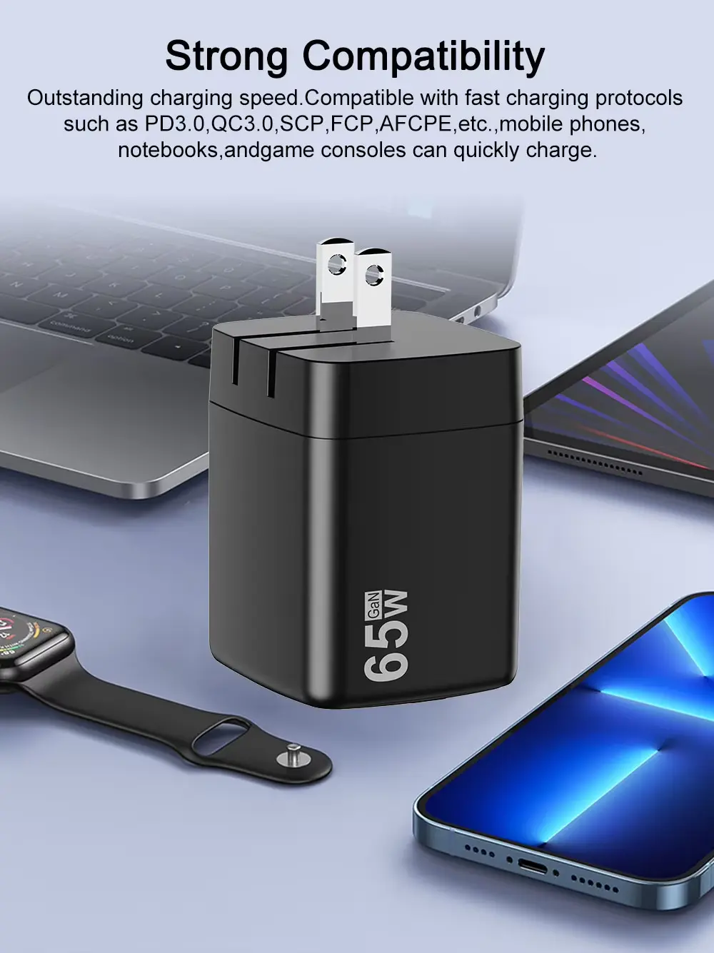 Персонализирано лого Mini 65W PD Gan USB C зарядно устройство Сгъваем американски щепсел USB адаптер за пътуване Зарядно устройство за телефон |