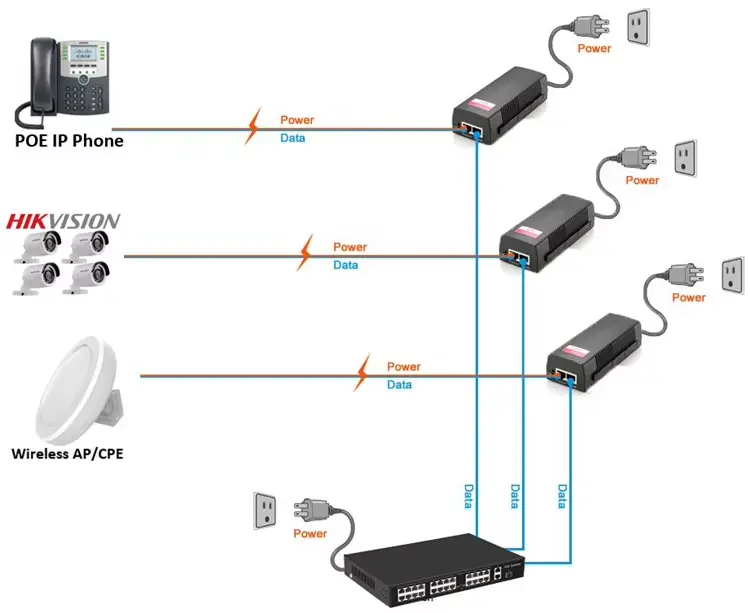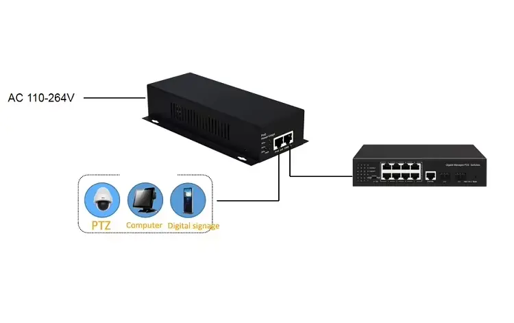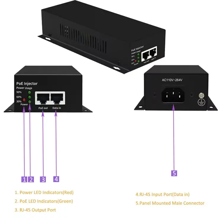 Бюджет на мощността: Уверете се, че вашето захранвано устройство (PD) изисква ≤ 90 W. Инжекторът ще доставя само мощността, която устройството преговаря.
