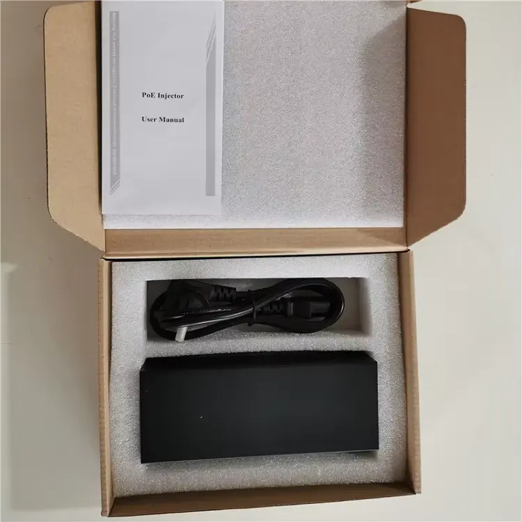 1. 90W Gigabit POE инжектор: 1 комплект 2. Ръководство: 1 БР 3. Сертификат за съответствие, гаранционна карта: 1 бр |