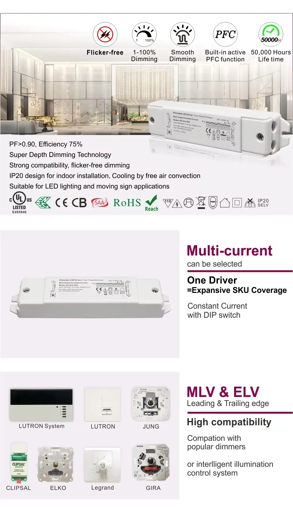 Здрава мощност и висока ефективност: С висока корекция на фактора на мощността (PF>0,9) и ниско общо хармонично изкривяване (THD), нашият драйвер отговаря на глобалните изисквания за енергийна ефективност, намалява натоварването на вашата електрическа система и работи със страхотна, надеждна производителност.