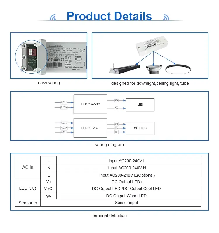 Изходен постоянен ток: Специално проектиран за 350mA LED осветителни тела, осигурявайки стабилна работа и удължавайки живота на вашите осветителни тела.